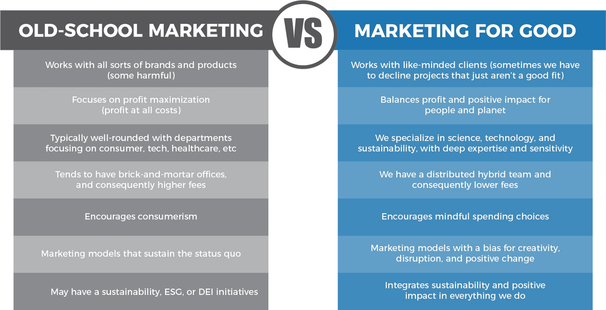 We believe marketing can be a force for good—when done consciously. Whether we’re helping a tech transfer initiative at a university or working with a global nonprofit, we’re always driven by one goal: to help brands that want to make the world a better place thrive in the current system. This means moving beyond profit-maximization to support brands that truly embody sustainability.